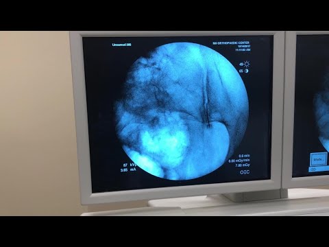 - Arthrogram: Inject contrast to confirm intra-articular position — should see dye filling the joint space